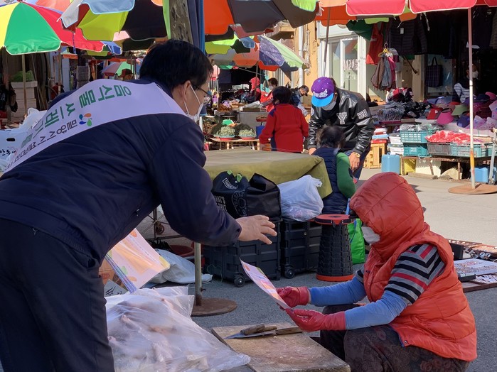 시설관리공단은 밀양 5일장이 열리는 시기에 맞춰 밀양, 하남, 삼랑진 및 대형마트에서 전단지 배포를 통해 올바른 분리배출 방법을 홍보한다.