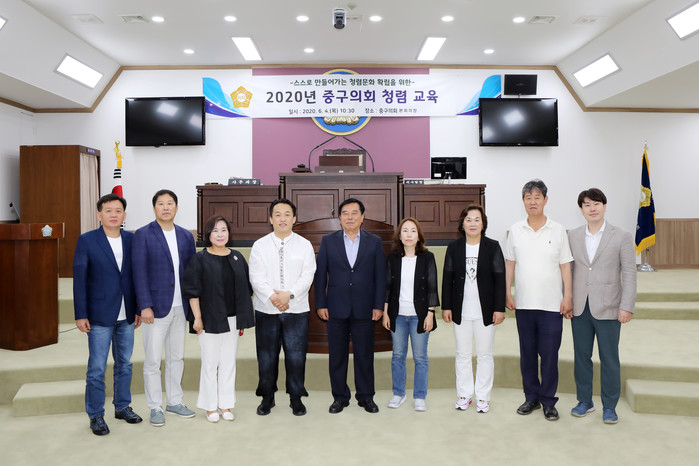 [시민일보 = 여영준 기자] 서울 중구의회(의장 조영훈)가 지난 4일 의회 본회의장에서 중구의원과 의회 직원들을 대상으로 ‘중구의회 청렴교육’을 실시하고 법정 교육인 청렴 교육을 통해 의회 자정능력 강화와 청렴의식을 환기하는 시간을 가졌다.