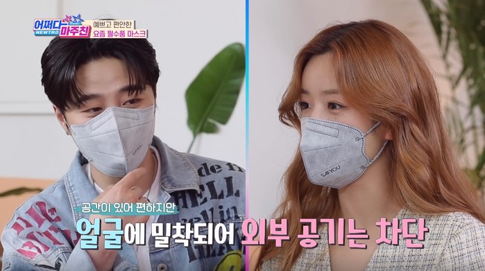이날 소개된 세이퓨마스크는 (주)썬필코리아만의 필터기술로 KF94 마스크임에도 보다 더 호흡이 편안한 것이 특징이라고 에이핑크 보미와 빅플로 의진이 소개했다.
