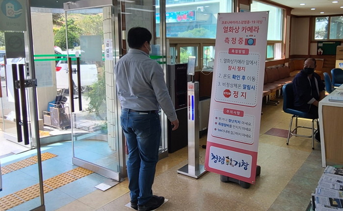 이번에 설치한 열화상카메라는 마스크를 착용한 상태에서도 얼굴인식과 발열측정이 가능한 장비다. 사람 체온이 37.5도를 넘길 경우 자동 경보가 울리고, 마스크 미착용 시 안내멘트도 나와 방역 수칙 준수에 대한 경각심을 높일 수 있다. 뿐만 아니라 출입자의 얼굴, 온도, 방문 일시 등의 정보를 저장해 확진자 발생 시 역학조사에 큰 도움을 줄 것으로 보인다.