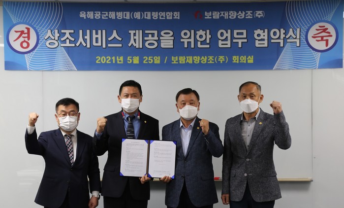 보람재향상조 회의실에서 열린 이번 협약식에는 보람재향상조 장용훈 대표, 강대홍 국장과 육해공군해병대 예비역 대령연합회 유승일 회장, 김영성 사무총장 등 양측 관계자들이 참석했다.