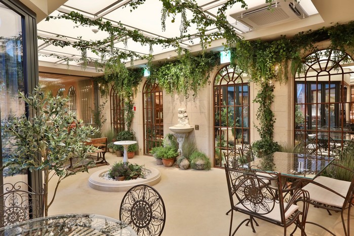 ‘테라스’라는 이름에 어울리는 공간 디자인도 선보였다. 건물의 중정(中庭, 보이드 공간)과 성큰(sunken, 움푹 들어간 공간)에 고풍스러운 오브제를 배치해 ‘모던 헤리티지(modern heritage, 현대적인 세련미와 고전적인 품격을 동시에 강조하는 디자인 사조)’풍의 아늑한 분위기를 자아내는 정원을 만들어냈다.