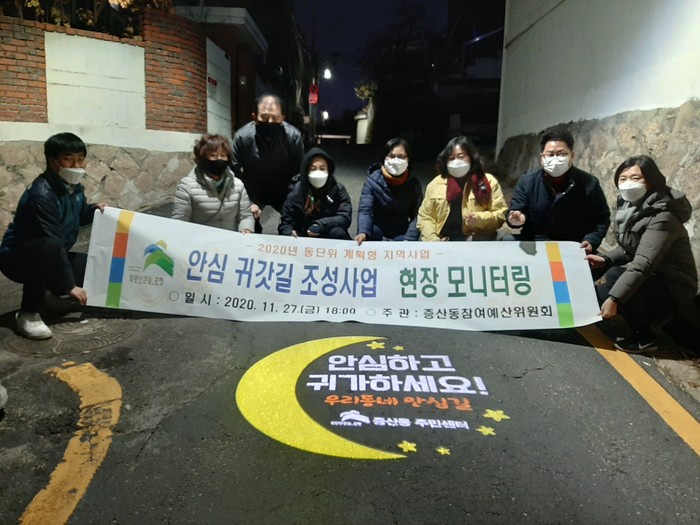 강찬선 증산동 참여예산위원장은 “쏠라표지병 및 로고젝터를 설치하도록 뜻을 모아주신 주민여러분에게 감사하다”며 “야간에 환하게 밝히는 불빛으로 안전한 귀갓길이 되면서 경관 또한 좋아 도로 미관도 개선됐다”고 말했다.