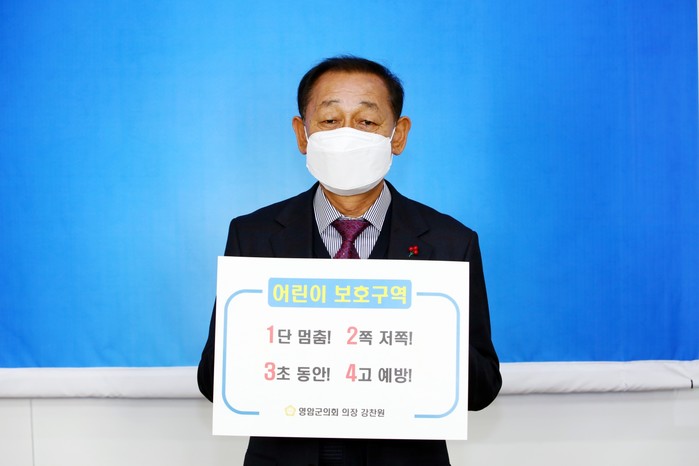 한편, 조우종 영암경찰서장의 지목을 받아 캠페인에 참여한 강 의장은 "어린이가 안전하고 행복하게 성장하는 환경을 조성하는데 영암군의회에서도 최선을 다하겠다.”고 말했다.