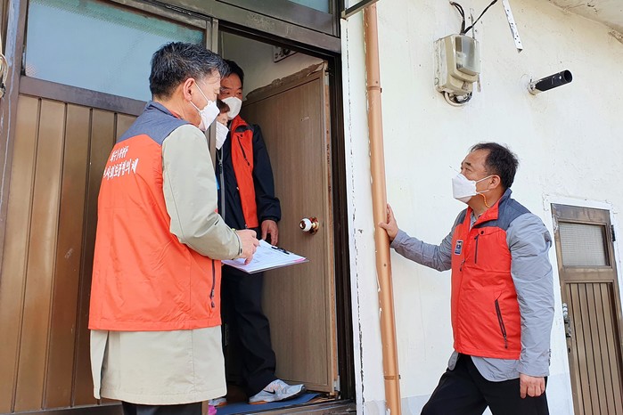 인천 동구 화수1·화평동에서는 복지취약계층을 조기에 발굴하고 복지사각지대 해소를 위해 지역내 55세 이상 중장년 및 노인 1인가구에 대한 일제 전수조사를 하고 있다. 사진은 최근 동 관계자가 지역내 1인가구를 방문해 전수조사를 하며 안부를 묻고 있는 모습. (사진제공=동구청)