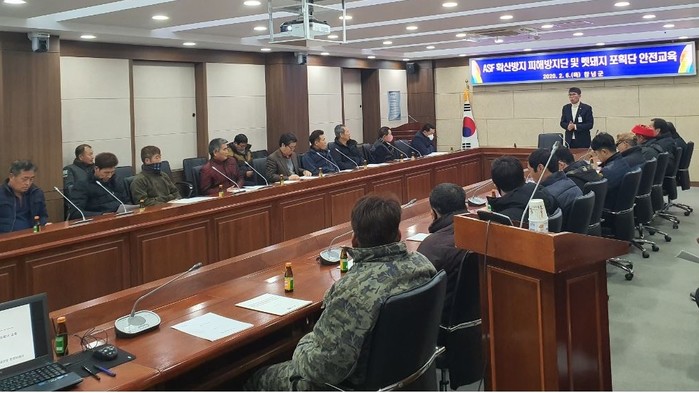 군 담당자와 피해방지단 및 멧돼지 포획단 등 41명이 참석한 가운데 주최한 이번 교육은 ▲포획 시 준수사항 ▲멧돼지 사체처리 요령 및 시료채취 방법 ▲총기 관련 안전수칙 ▲현장 대응 수칙 체크리스트 배부 등의 순으로 진행됐다.