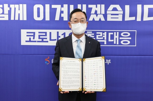 협약식은 코로나 확산 방지를 위해 8개 지자체는 화성 동탄복합문화센터 반석아트홀에서 현장에 참석하고 나머지 지자체는 영상을 통한 하이브리드 방식으로 진행됐다.