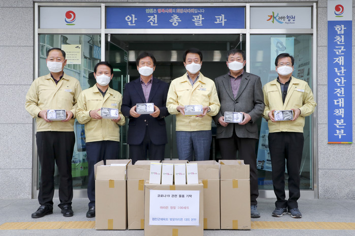 이번에 전달된 물품은 제19회 합천벚꽃마라톤대회 홍보기념품으로 제작된 마라톤양말이며, 코로나19 확산방지와 참가자 안전을 위하여 본 대회를 전격 취소결정함에 따라 발생된 잔여물품을 코로나19방역 근무자에 대한 격려물품으로 지원하는 차원에서 마련됐다.