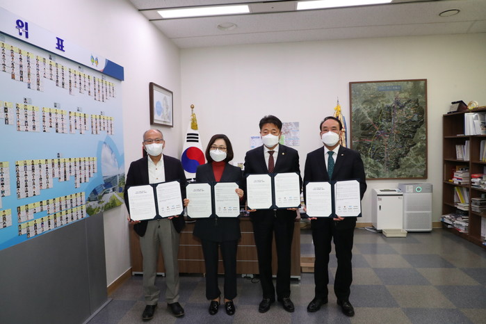 이번 협약식에는 박문석 의장을 비롯해 은수미 성남시장, 성남상공회의소 박용후 회장, 월드휴먼브리지 김병삼 대표가 참석하여 코로나19의 지역사회 확산에 따른 피해극복과 취약계층 지원을 위한 사업에 상호 협력하기로 뜻을 모았다.