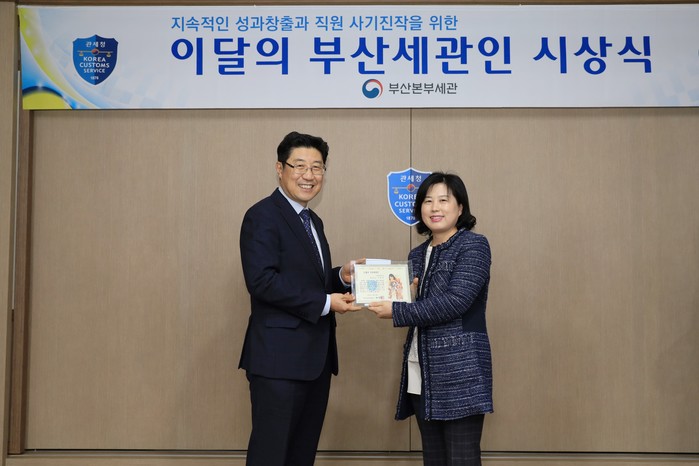 부산본부세관(세관장 제영광)은 12일 이영숙 관세행정관을 2019년 ‘11월의 부산세관인’으로 선정・시상했다.