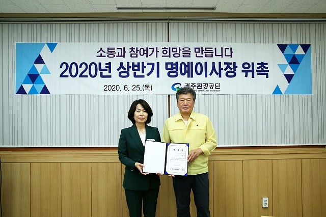 [광주=정찬남 기자] 광주환경공단(이사장 김강열)이 ‘1일 명예이사장’으로 광주지방변호사회장인 임선숙 변호사를 위촉했다고 25일 밝혔다.