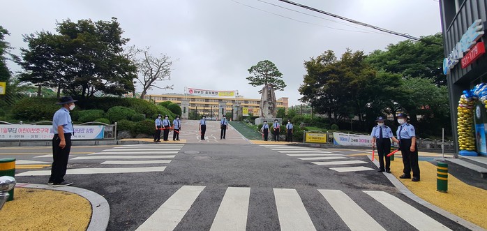 경기 이천시 실버경찰봉사대 창전동 분회는 26일 발대식을 열고, 등하교길 교통질서 바로잡기, 학교폭력 근절 예방 활동 등을 시작했다. 실버경찰봉사대는 지역내 노인들의 자발적인 사회공헌 활동을 통해 안전한 창전동 만들기에 기여할 것으로 기대된다. 사진은 발대식 후 실버경찰봉사대가 이천초등학교 앞에서 등하교길 교통정리를 하는 모습. (사진제공=이천시청)