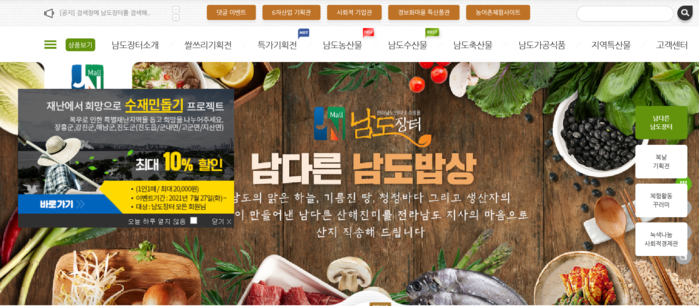 남도장터(jnmall.kr)는 온라인 특별전을 기획해 오는 8월 15일까지 호우 피해로 어려운 장흥군, 강진군, 해남군, 진도군의 진도읍, 군내면, 고군면, 지산면 소재 농어업인의 판로 확대를 지원한다.