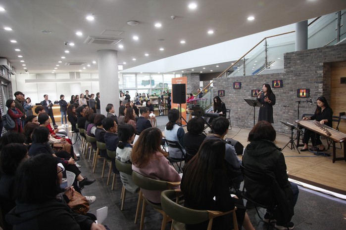 경기 수원시 팔달구는 5일 구청 1층 열린 공간에서 점심시간을 활용해 런치 음악회를 개최했다. 음악회에서는 건반, 가야금, 재즈 보컬리스트로 구성된 긱스트링 밴드의 공연과 함께 꾸러기 그림 작가 ‘정구’가 그려주는 ‘3분 초상화’ 이벤트도 함께 진행됐다. 사진은 밴드가 공연을 선보이는 모습. (사진제공=팔달구청)