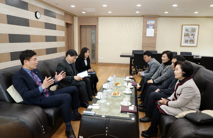 경기 수원시 권선구는 18일 수원여대를 방문해 지역내 코로나19 확산방지 방안에 대해 논의했다. 수원여대는 오는 3월2일 개강을 앞두고 코로나19의 대학내 유입 차단과 학생 불안감 해소를 위해 개강 1주차는 전면 휴강을 실시하기로 했으며, 감염증 확산 추이에 따라 추가연장 여부를 결정할 계획이다. 사진은 길영배 구청장 및 관계자들이 이야기를 나누는 모습. (사진제공=권선구청)