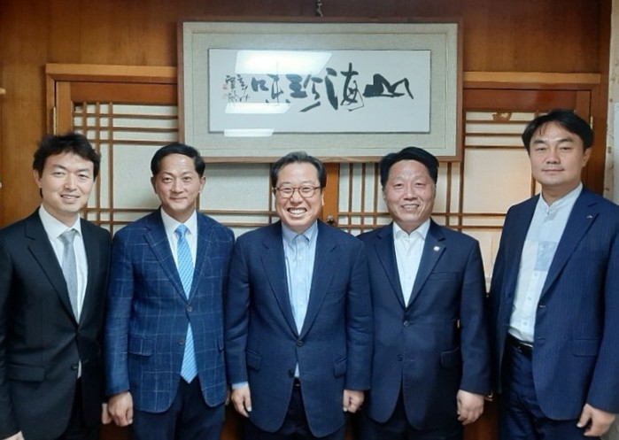 경기 남양주시를 비롯한 고양시, 부천시, 하남시, 과천시 등 제3기 신도시 5개 지자체 협의회가 18일 서울 여의도에서 신도시 사업의 성공적 추진을 위한 회의를 개최했다. 사진은 조광한 시장(가운데)과 각 시의 시장들이 기념촬영을 하는 모습. (사진제공=남양주시청)