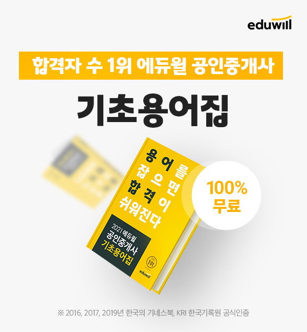 [시민일보 = 여영준 기자] 2021년 공인중개사를 준비하는 수험생을 위해 종합교육기업 에듀윌(대표 박명규)은 ‘기초용어집’을 매일 선착순 무료로 증정한다고 밝혔다.