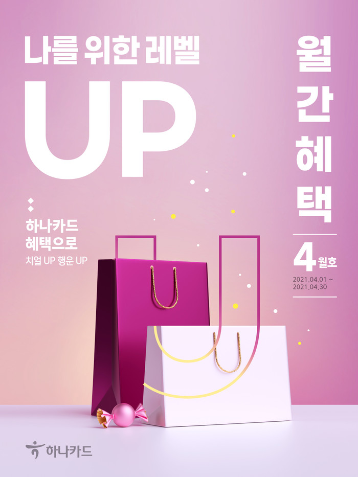 하나카드 월간혜택 4월호의 주제는 ‘나를 위한 레벨업’으로 코로나 일상 시대에 지친 손님의 리프레쉬를 위해 패션, 가전, 여행, 해외 직구 등 다양한 컨텐츠의 쇼핑을 합리적으로 누리 실 수 있는 혜택 정보를 중점적으로 알린다.