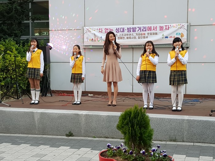 경기 수원시 장안구 율천동은 지난 1일 성대·밤밭 문화의 거리 일대에서 ‘차 없는 거리(Car Free Day)’ 행사를 개최했다. 사진은 이날 행사 참여자들이 노래 공연을 선보이는 모습. (사진제공=장안구청)