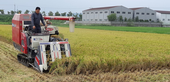 칠산서부동 일대에서 15농가의 논 20ha에서 본격적인 추석 햅쌀용 조생종 벼 수확에 들어간다.