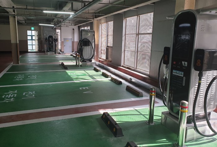 염리공영주자창의 급속충전소에는 50kW 급속충전기 5개가 갖춰져 한 번에 전기차 5대를 충전할 수 있게 됐다.