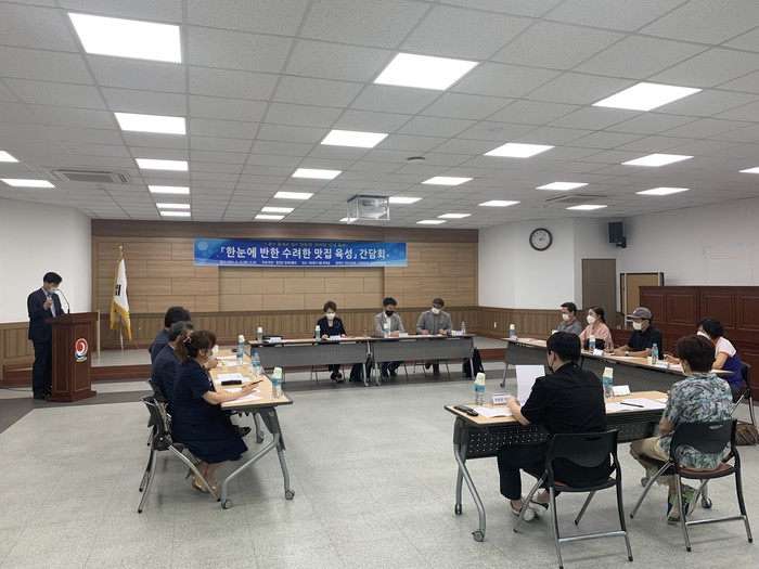 합천군(군수 문준희)은 지난 15일 제2청사 3층 회의실에서 합천군 관계자를 포함하여 소상공인대표, 컨설팅업체, 홍보마케팅업체 직원 등 15여명이 참석한 가운데 「한눈에 반한 수려한 맛집」육성을 위한 관계자 간담회를 개최했다.