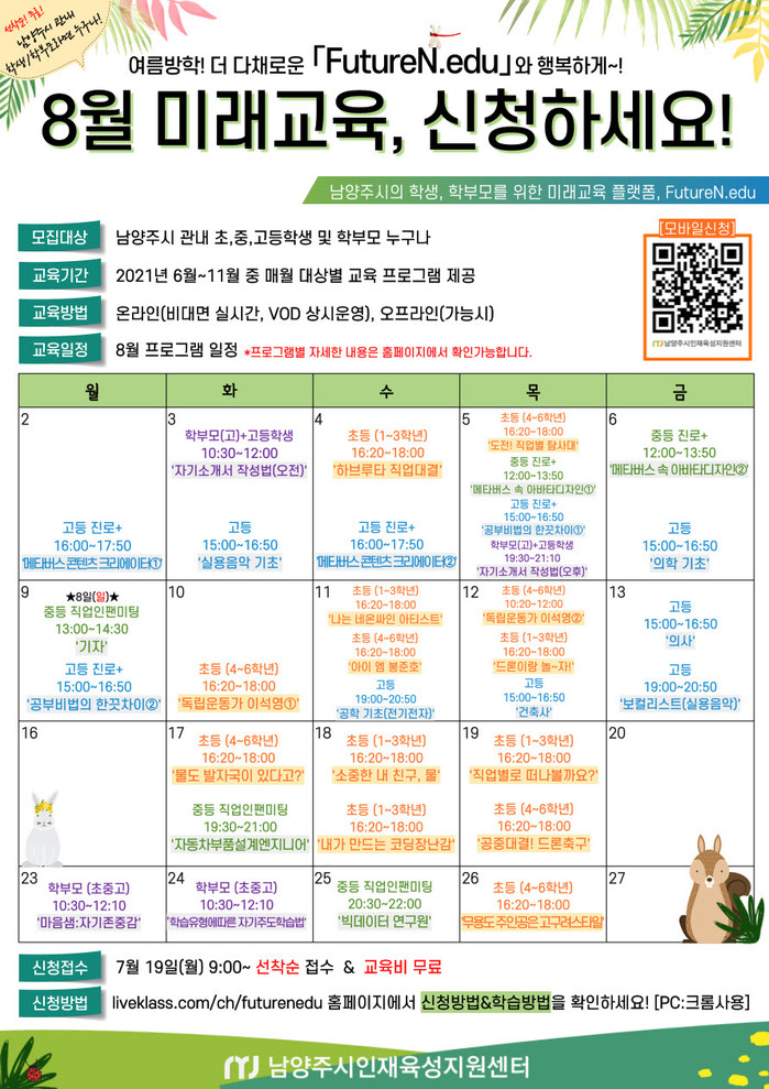 | ▲ 여름방학 맞이 미래교육 8월 참가자 모집 안내문. (사진제공=남양주시청) |