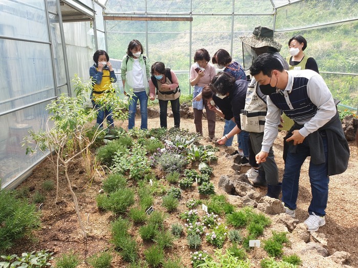 경기 광주시는 이달부터 오는 9월까지 ‘시민과 함께하는 반려식물 원데이클래스 허브 교육’ 과정을 추진하며, 허브화분 만들기·허브재배 및 관리방법·활용방법·허브전시관 허브체험·도시농업체험전시관 관람 등을 진행한다. 사진은 최근 허브 교육이 진행되고 있는 모습. (사진제공=광주시청)