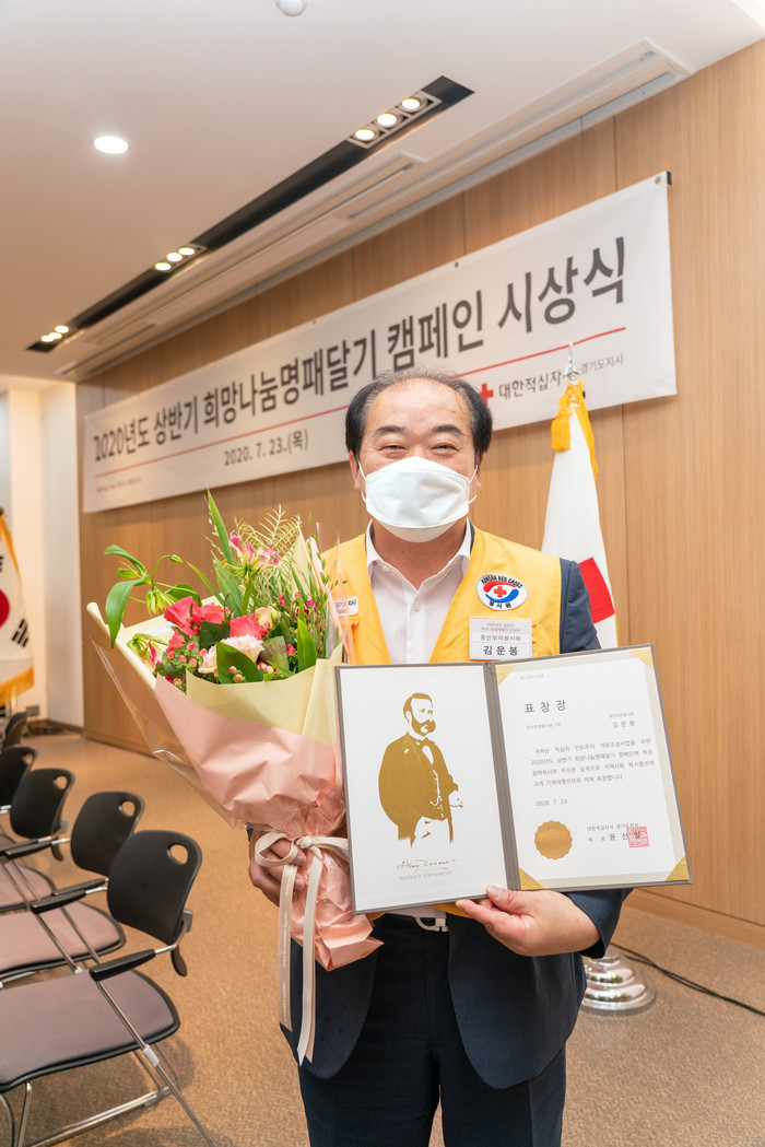 대한적십자사 경기도지사는 적십자 봉사원 및 적십자 봉사회가 지역사회에서 정기적으로 나눔에 참여하는 개인, 개인사업자, 법인을 추천하는 희망나눔명패달기 캠페인을 실시하고 있으며, 이번 시상식은 2020년 1월 1일부터 6월 30일까지 6개월간 활동한 우수추천봉사회(단체), 우수추천봉사원(개인)에 대한 시상을 진행했다.