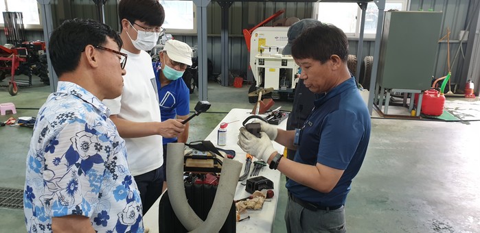 충남 홍성군 농업기술센터가 다가오는 추석명절을 앞두고 벌초를 위해 예취기 사용이 증가함에 따라 예취기 정비 및 안전교육에 나섰다. 센터는 오는 7일까지 총 8회 125농가를 대상으로 정비, 사용방법, 보관요령 등의 교육을 진행한다. 사진은 정비교육 진행 모습. (사진제공=홍성군청)