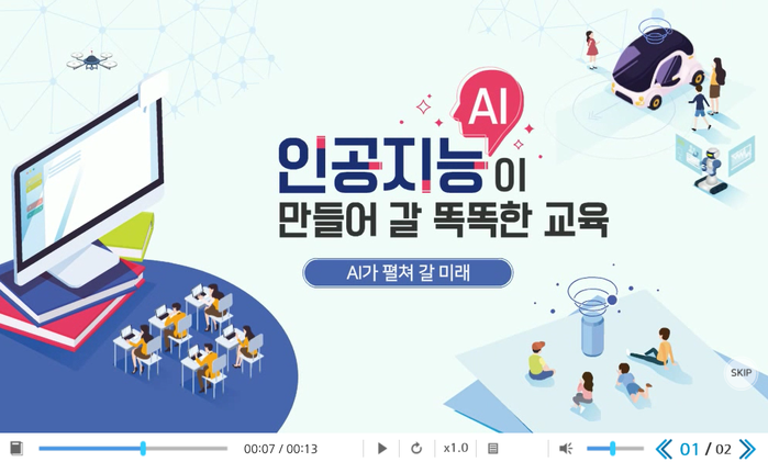 이 콘텐츠는 지난해 5월 부산시교육청에서 발간한‘인공지능 기반 교육 가이드북’과 연계하여 AI기반 교육의 이해와 수업 활용 사례를 통해 교원의 현장 이해도를 높이기 위해 개발했다.