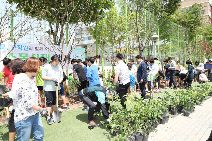 특히 미세먼지에 민감한 어린이를 보호하고자 학교의 운동장, 옥상 등 학교 내부와 학교 통학로 주변에 벽면녹화, 띠녹지 등을 집중 조성하는 '통학로 숲 터널'을 올해 하늘초등학교를 시작으로 3곳에 조성했으며, 지난 8월5일 서부교육지원청과 협약을 체결하고 지역내 47개 학교에 열린 학교 숲을 확대 추진할 예정이다.