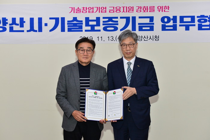 시는 13일 오전 시장 집무실에서 기술보증기금과 ‘양산시 기술창업기업 금융지원 강화를 위한 업무협약’을 체결하고 적극적인 협업체계를 구축하기로 했다.
