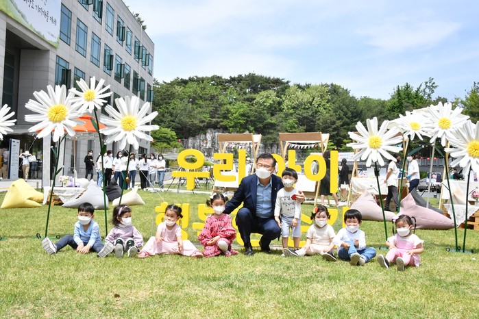서울 중랑구가 오는 21일까지 '제11회 사랑스런 우리 아이 사진 전시회'를 개최해 '아이들의 사랑스럽고 행복한 순간'을 주제로 진행한 공모에서 선정한 본선 진출작을 전시한다. 사진은 사진 전시회에 참석한 류경기 구청장(가운데)과 아이들이 기념촬영을 하고 있는 모습. (사진제공=중랑구청)