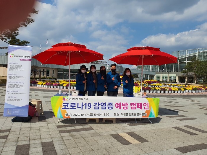 거창지역자활센터 주관으로 캠페인에 나선 가운데, 행사 간 감염병 예방을 위해 마스크와 위생장갑을 착용하고, 예방수칙 홍보 안내문과 적극적인 마스크 착용을 권장하기 위해 자활사업 참여주민들이 직접 만든 마스크 스트랩 1,000개를 무상으로 나누며 코로나19 예방 국민행동수칙을 홍보했다.
