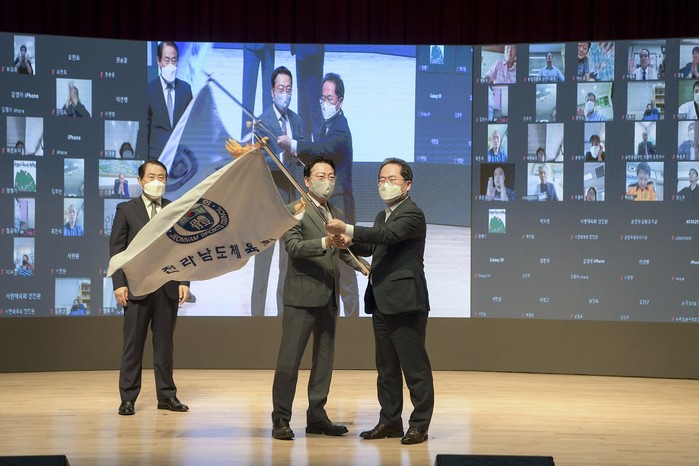 발대식은 대회기 이양식, 위촉장 수여 및 결의문 낭독, 전남체전 준비상황 보고와 예산 및 조직·집행위원회 운영규정 심의의결 등으로 진행됐다.