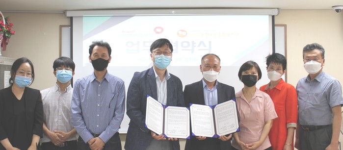 서울 강남구립 논현노인종합복지관과 국민건강보험공단 강남북부지사는 ‘행복한 지역공동체 조성 및 홀몸노인 지원’을 위한 업무협약(MOU)을 체결했다. 사진은 협약식 관계자들이 기념촬영을 하는 모습. (사진제공=강남구청)