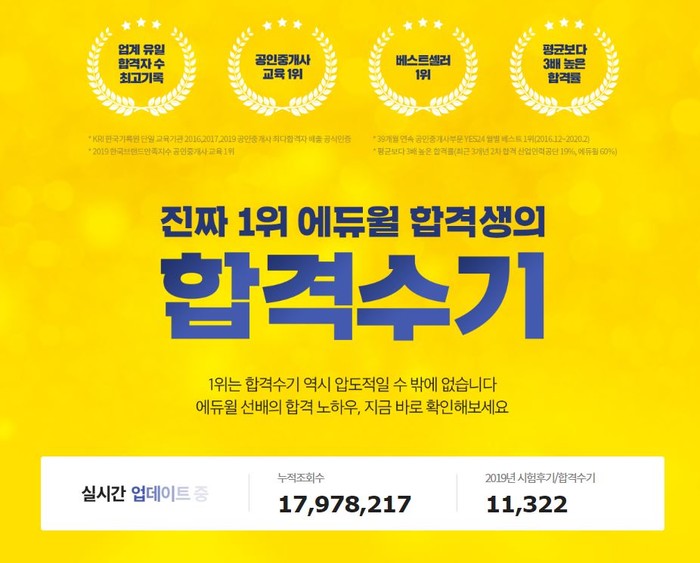 2019년 10월에 치러진 공인중개사 자격시험 종료 이틀 후인 2019년 10월28일 에듀윌 홈페이지에는 약 6000건에 가까운 시험후기가 등록됐다.