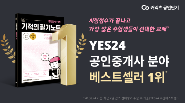 지난 24일 인터넷서점 예스24에서 집계된 베스트셀러 순위(8월 24일 기준, 최근 7일간 판매량 및 주문수)에 따르면, 지난 8월 3일 공인단기에서 출간한 ‘공인중개사 1차 기적의 필기노트’는 기존 수험서들을 제치고 공인중개사 부문 1위에 등극했다.