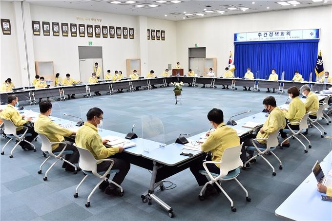 변성완 부산시장 권한대행은 14일 열린 주간정책회의 모두 발언에서 “추석이 최대 고비”라며 “추석을 기점으로 재확산할 우려가 있는 만큼, 방역에 최선을 다해달라”고 당부했다. 이날 주간정책회의에는 부산시 18개 실·국장 등이 참석했다.