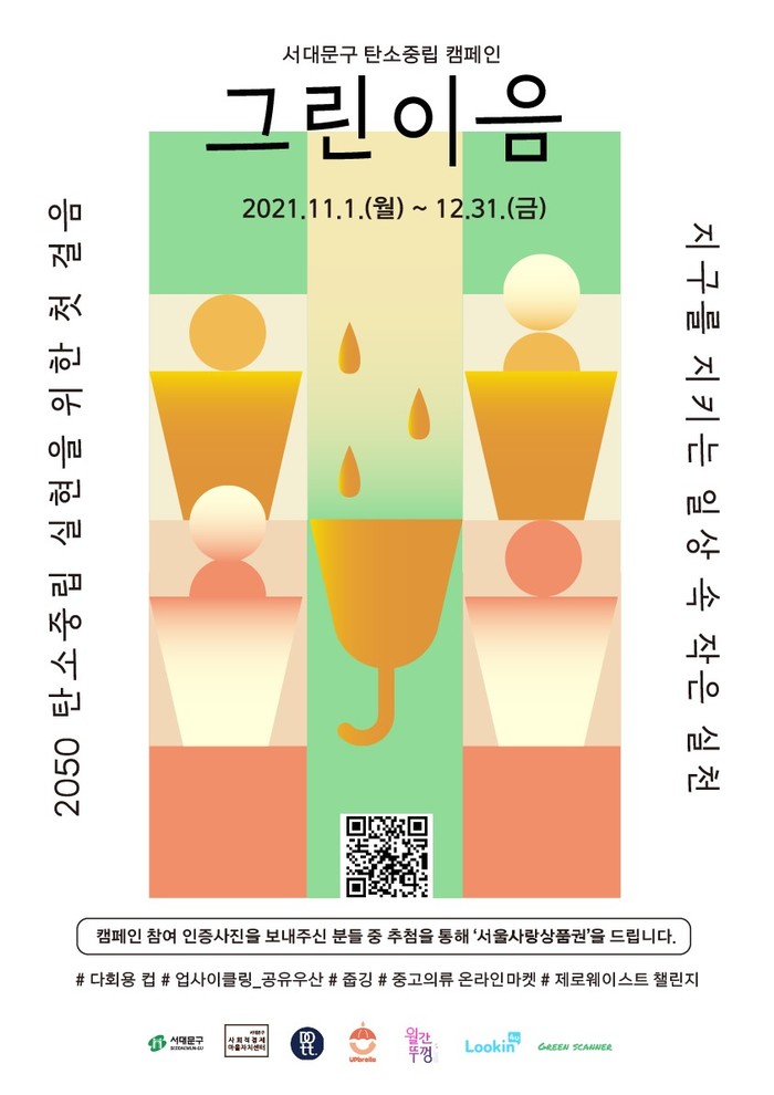 [시민일보 = 홍덕표 기자] 서울 서대문구(구청장 문석진)가 ‘그린벤처’ 및 ‘그린프로젝트팀’과 공동으로 11월1일~12월 31일 ‘2021 탄소중립 캠페인-그린이음’을 추진한다.