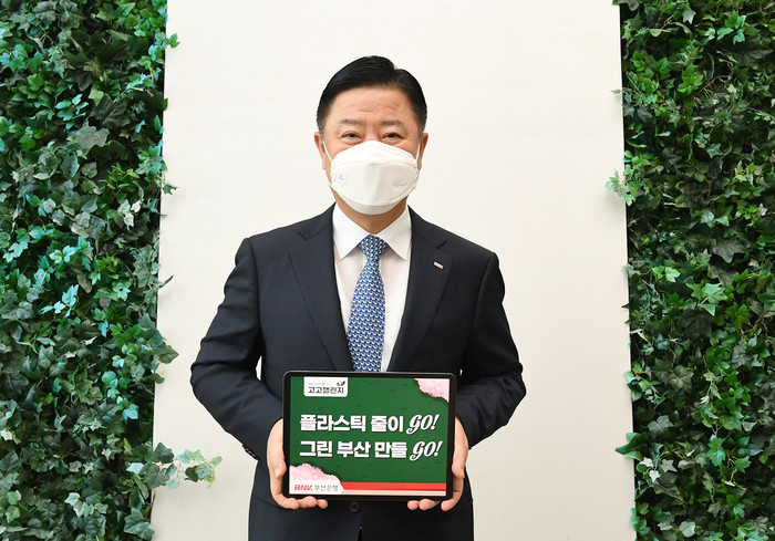 ‘플라스틱 줄이GO! 그린 부산 만들GO!’를 슬로건으로 정하고 탈(脫) 플라스틱 실천을 약속한 안감찬 은행장은 “앞으로 부산은행 임직원과 함께 환경보호에 앞장서고, 그린(Green)부산을 만들기 위한 친환경 사회공헌 활동을 지속적으로 발굴하고 이어가겠다”고 전했다.