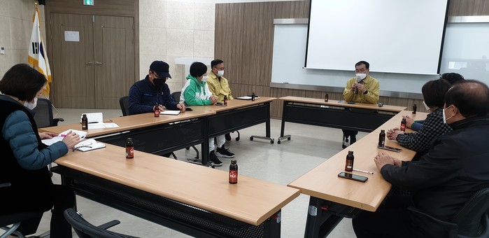 경기 수원시 영통구는 2일 지역내 확진자 발생에 따라 지역주민의 불안감을 해소하기 위해 망포1동에서 긴급 주민회의 및 현장방문을 실시했다. 회의에서는 송영완 구청장과 망포1동장, 단체장 및 아파트입주자대표 등이 모인 가운데 확진자 발생에 따른 방역 등 대응책에 대한 정보를 공유하고 주민들의 협조를 당부했다. 사진은 송 구청장이 발언하는 모습. (사진제공=영통구청)