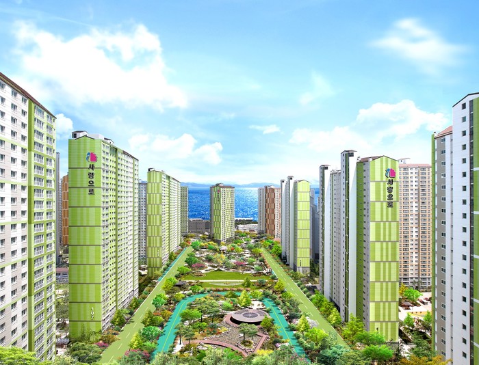 단지 중심부에 축구장 3개 면적의 대형 중앙광장이 들어서는가 하면 조형 소나무, 제주팽나무, 종려나무 등 다양한 조경으로 입주민 만족도가 높았다.