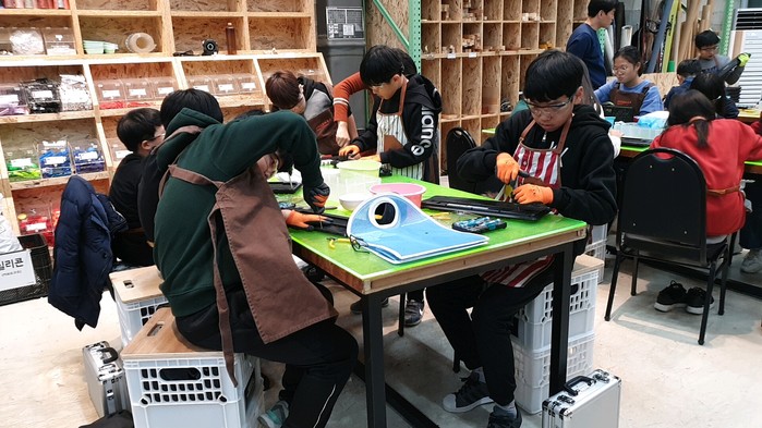 서울 도봉구가 최근 창일초등학교 학생들을 대상으로 재활용에 대한 것을 배우고 경험할 수 있는 서울새활용플라자 견학을 진행했다. 이날 학생들은 장난감이나 생활용품을 직접 분류하는 등의 체험을 했다. 사진은 체험 프로그램에 참여한 학생들의 모습. (사진제공=도봉구청)