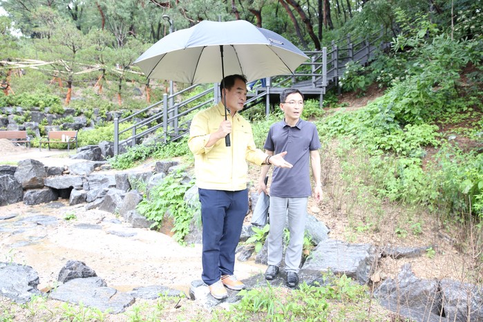 박 의장은 “연일 계속되는 기록적인 폭우로 피해가 속출하고 있어 관내 공사현장과 시설물 점검에 나섰다”며, 동행한 구청 관계자에게 “당분간 비가 계속될 것으로 예상되는 만큼 집중호우로 인한 주민 피해를 최소화할 수 있도록 수해 예방에 만전을 기해달라”고 주문했다.