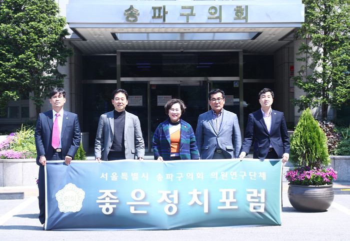 이에 따라 활동을 개시하는 ‘좋은정치포럼’은 국민 모두가 정치에 관심을 갖고 발전적이고 지향적인 생각으로 거듭날 수 있도록 지방자치 발전과 동시에 의원 상호간의 협력으로 송파구의회 입법활동을 발전시키는 데 목적을 두고, 정명숙 의원을 회장, 이영재 의원을 부회장으로 해 윤영한·김형대·김장환 의원이 참여하고 있다.