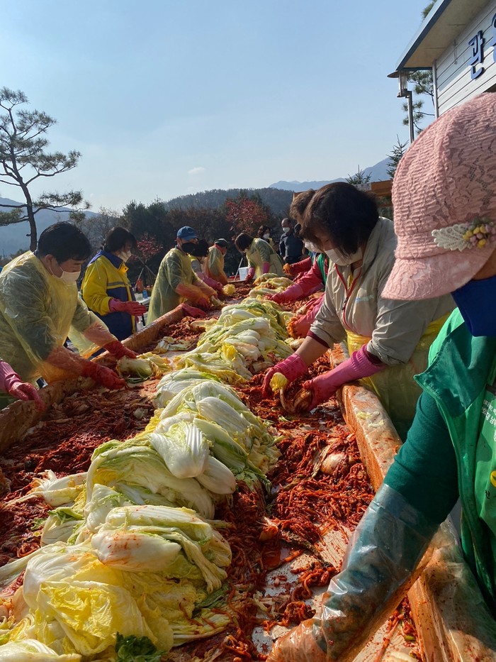 경기 포천시 화현면 새마을부녀회는 최근 ‘사랑의 김장나누기’ 행사를 개최했다. 이날 만든 김치는 지역내 소외된 이웃에 전달됐다. 사진은 이날 봉사자들이 함께 김치를 만들고 있는 모습. (사진제공=포천시청)