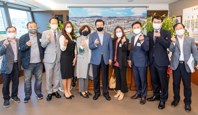 용산구는 오는 19일까지 동별 현안과 건의사항을 듣기 위해 16개동 주민대표단과 소규모 간담회를 실시한다. 사진은 지난 6일 열린 후암동 대표단과의 간담회에서 성장현 구청장(오른쪽에서 다섯 번째)과 대표단이 함께 기념촬영을 하는 모습. (사진제공=용산구청)