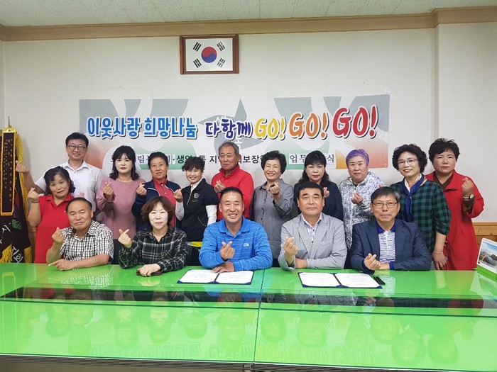 경기 동두천시 생연1동 지역사회보장협의체는 최근 로컬드림봉사회와 저소득 취약계층에 대한 민간자원 연계 및 지원을 위한 '이웃사랑실천 행복나눔 업무협약'을 체결했다. 사진은 협약 후 관계자들이 포즈를 취하며 기념촬영을 하고 있는 모습. (사진제공=동두천시청)